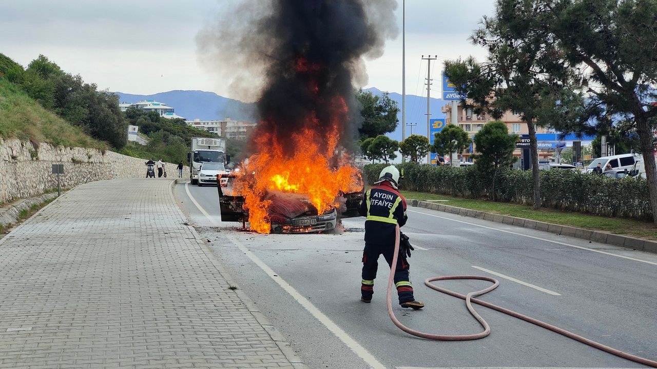 Olay, Kuşadası ilçesi Süleyman Demirel Bulvarı üzerinde meydana geldi. Edinilen bilgiye göre seyir halindeki 35 CBP 219 plakalı otomobilin sürücüsü E.E., motor kısmından yükselen dumanları fark edince aracını durdurarak 112 Acil Çağrı Merkezi'ne ihbarda bulundu. O esnada araçtan alevler yükseldi. Kısa sürede büyüyen alevler aracı tamamen sardı. İhbar üzerine bölgeye sevk edilen itfaiye ekiplerinin müdahalesiyle yangın söndürüldü. Ekipler soğutma çalışması gerçekleştirirken, otomobil kullanılamaz hale geldi.