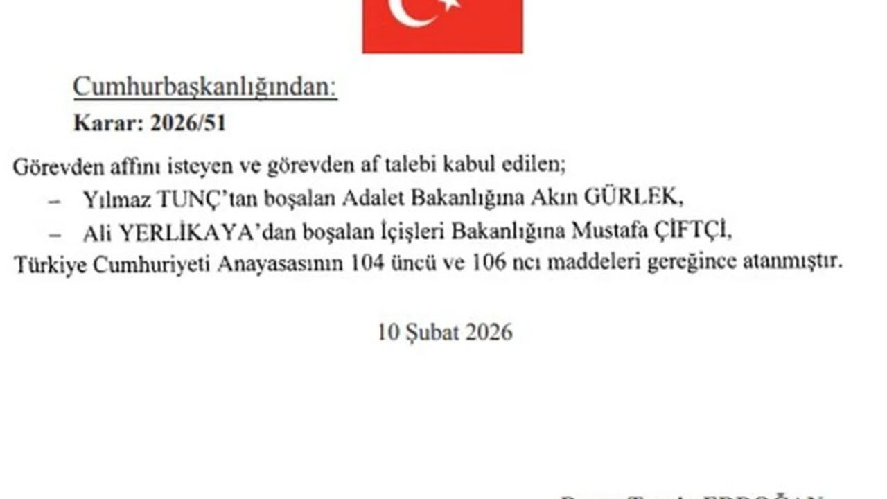 Atama kararında, ilgili bakanların kendi istekleri doğrultusunda affının kabul edildiği ve yerlerine atanan yeni isimlerin Resmî Gazete’de resmen ilan edildiği belirtildi. Yeni bakanların görevlerine başlamasıyla birlikte iki kritik bakanlıkta yeni dönem resmen açılmış oldu.