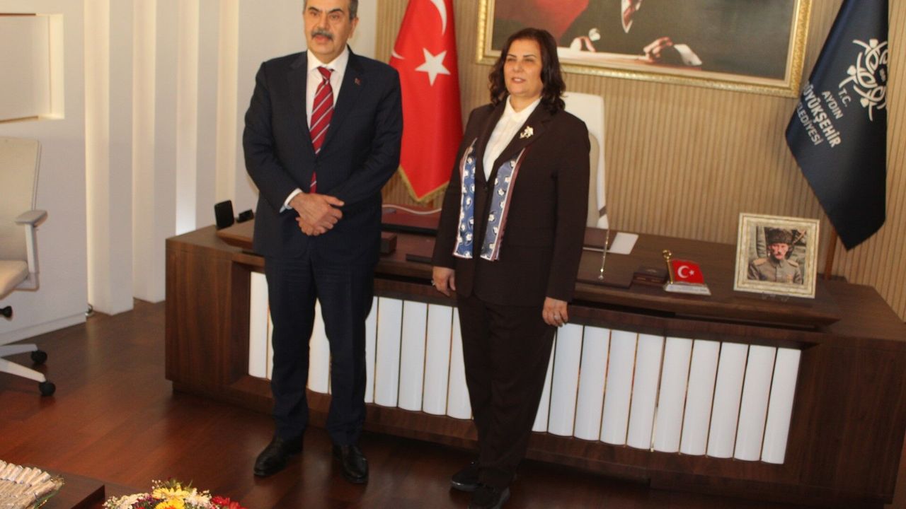 Milli Eğitim Bakanı Yusuf Tekin bir dizi ziyaret ve program için Aydın’a geldi. Aydın’da temaslarda bulunan Bakan Tekin Aydın Büyükşehir Belediye Başkanı Özlem Çerçioğlu’nu da makamında ziyaret etti. Bakan Tekin, belediye binası girişinde çiçekle karşılandı. Başkan Çerçioğlu da Bakan Tekin’e makam odasında Efe heykeli ve Aydın’ın yöresel ürünlerinden oluşan sepet takdim etti. Başkan Çerçioğlu, Aydın’da yürütülen ve hayata geçirilen hizmetlerle ilgili bilgilendirmede bulunurken, Bakan Tekin ise Aydın Büyükşehir Belediye Başkanı Özlem Çerçioğlu’na yapmış olduğu hizmetlerden dolayı teşekkür etti.