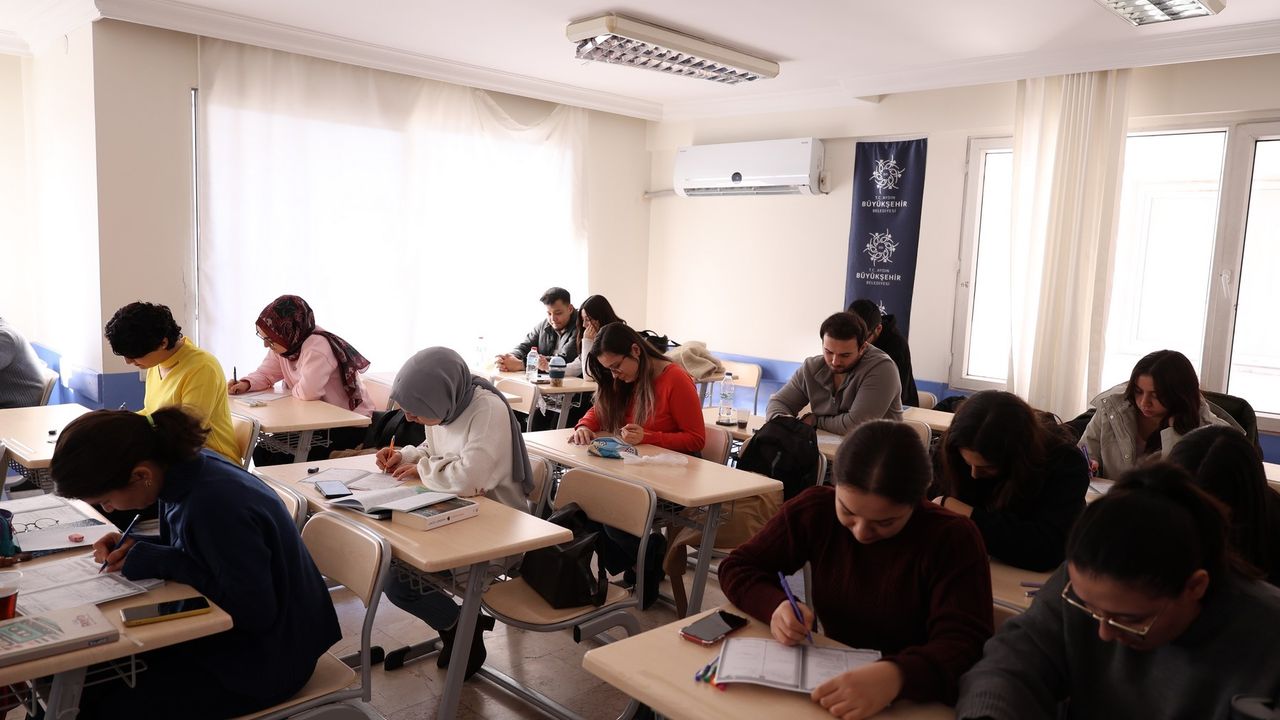 Büyükşehir Belediyesi 100. Yıl Gençlik ve Kültür Merkezi’nde ücretsiz olarak verilen Kamu Personeli Seçme Sınavı (KPSS) hazırlık eğitimleri, gençlerin yoğun katılımıyla sürüyor.