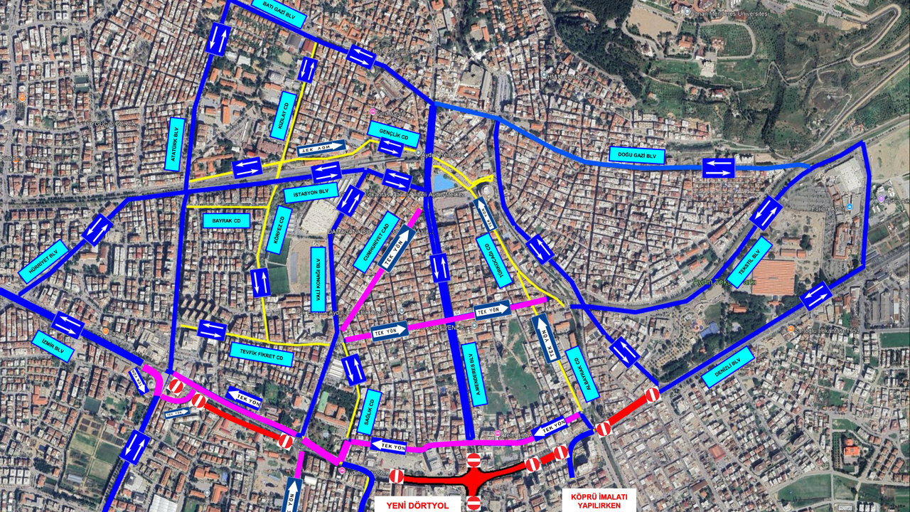 Yeni Dörtyol Kavşağı ile İmam Hatip Kavşağı arası kapalı olacağından Tepecik Bulvarı, Egemenlik Bulvarı, 522 Sokak, Mehmet Akif Caddesi, Çine Caddesi ve Atatürk Bulvarı güzergahlarını kullanabilecekler.