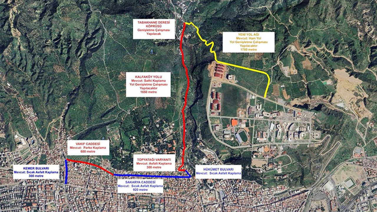 Aydın Büyükşehir Belediyesi ve Adnan Menderes Üniversitesi işbirliğiyle Kemer Mahallesi’nden Adnan Menderes Üniversitesi Aytepe Merkez Kampüsü ile Adnan Menderes Üniversitesi Uygulama ve Araştırma Hastanesi’ne uzanacak yeni bir ulaşım güzergahı daha Aydın’a kazandırılacak. Projenin toplam yatırım maliyeti yaklaşık 400 milyon Türk Lirası olacak. Kent içi ulaşımda yeni ve güçlü bir hat daha oluşturacak olan proje ile şehir içi trafik akışı daha da rahatlayacak. Projenin hızla tamamlanarak yeni güzergahın 1 Ekim 2026 tarihine kadar hizmete sunulması hedefleniyor. Yeni yol güzergahı, Kemer Bulvarı’ndan başlayarak Vakıf Caddesi-Sakarya Caddesi- Hükümet Bulvarı-Topyatağı Varyantı hattından devam edecek. Genişletme çalışmaları gerçekleştirilecek olan Kalfaköy Mahallesi yolu ile Tabakhane Deresi Köprüsü’nden sürdürülecek olan hattın tamamında sıcak asfalt kaplama çalışması da yapılacak. Güzergah, yapımı gerçekleştirilecek 1750 metre uzunluğundaki yeni yol ile tamamlanacak. Aydın’ın ulaşım altyapısına güç katacak olan ulaşım altyapısı yatırımı ile Adnan Menderes Üniversitesi Aytepe Merkez Kampüsü’ne ve Adnan Menderes Üniversitesi Uygulama ve Araştırma Hastanesi’ne kesintisiz ulaşım imkanı sağlanacak.