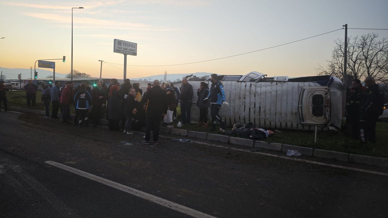 Kazayı gören diğer sürücülerin ihbarı üzerine bölgeye çok sayıda jandarma, itfaiye ve sağlık ekibi sevk edildi. Bazı yaralı işçiler, şok nedeniyle uzun süre yol kenarında beklerken, sağlık ekipleri yaralara ilk müdahaleyi olay yerinde yaptı. Yaralılar, ambulanslarla çevredeki hastanelere kaldırılarak tedavi altına alındı. Jandarma ekipleri kaza yerinde geniş güvenlik önlemleri alırken, trafik bir süre kontrollü olarak sağlandı. Devrilen minibüs, yapılan çalışmaların ardından bulunduğu yerden kaldırılırken, kazayla ilgili inceleme sürüyor.