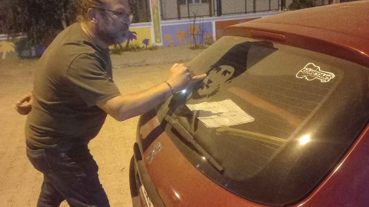 Nazilli’de görsel sanatlar öğretmeni Çetin Altınok’un, 10 Kasım’da tozlu bir aracın kapısına çizdiği Atatürk portresi, hem anlamı hem de sanatsal değeriyle büyük beğeni topladı.