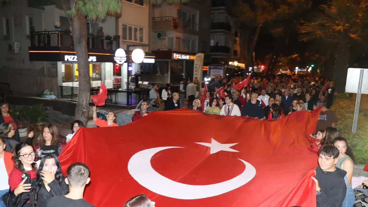 Nazilli’de Cumhuriyet’in 102. yılı büyük bir coşkuyla kutlandı. İlçe Stadı önünden başlayan ve yaklaşık 3 kilometre boyunca devam eden Fener Alayı’na binlerce vatandaş katıldı. Ellerinde Türk bayrakları ve meşalelerle yürüyen vatandaşlar, marşlar ve sloganlar eşliğinde Cumhuriyet coşkusunu doyasıya yaşadı.