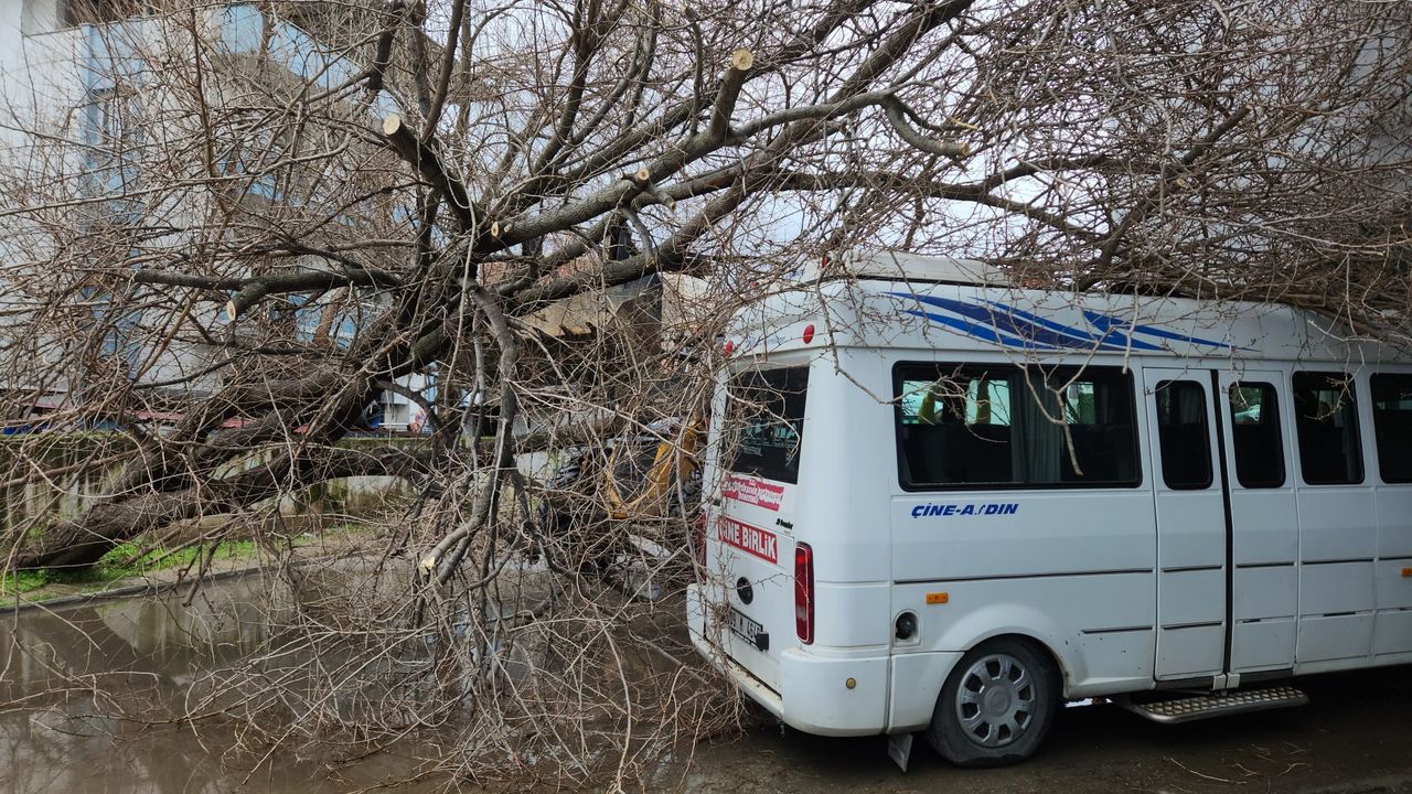 Aydın’ın Çine ilçesinde etkili olan sağanak yağışlı hava hayatı olumsuz etkiledi. Çine otogarı bahçesi içerisinde yağışla birlikte toprağın yumuşamasının ardından dut ağacı park halindeki bir minibüsün üstüne devrildi. Yaşanan olayda minibüste maddi hasar meydana gelirken, herhangi bir kimsenin zarar görmemesi ise teselli kaynağı oldu. Olayın yaşandığı bölgede devrilen ağacın kaldırılması için çalışma başlatıldı.