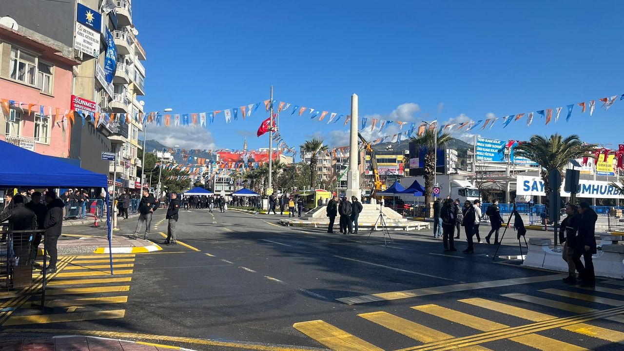 Cumhurbaşkanı Recep Tayyip Erdoğan, başta şehir hastanesi ve tamamlanan diğer yatırımların açılışını gerçekleştirmek için Aydın'a geliyor. Cumhurbaşkanı Erdoğan, saat 13.30’da Atatürk Kent Meydanı’nda Aydınlılarla buluşacak. Geniş güvenlik önlemlerinin alındığı meydan çevresinde polis ekipleri tarafından giriş noktalarında üst aramaları ve kimlik kontrolleri gerçekleştiriliyor. Güvenlik kontrolünden geçirilen vatandaşlar, tören alanına yönlendirilirken meydanda hareketlilik giderek artıyor. Kent genelinde düzenlenen tören dolayısıyla çevre yollarında ve meydan çevresinde trafik akışına yönelik tedbirler alınırken, yetkililer vatandaşlardan güvenlik kurallarına uymalarını ve görevlilerin yönlendirmelerini dikkate almalarını istedi.