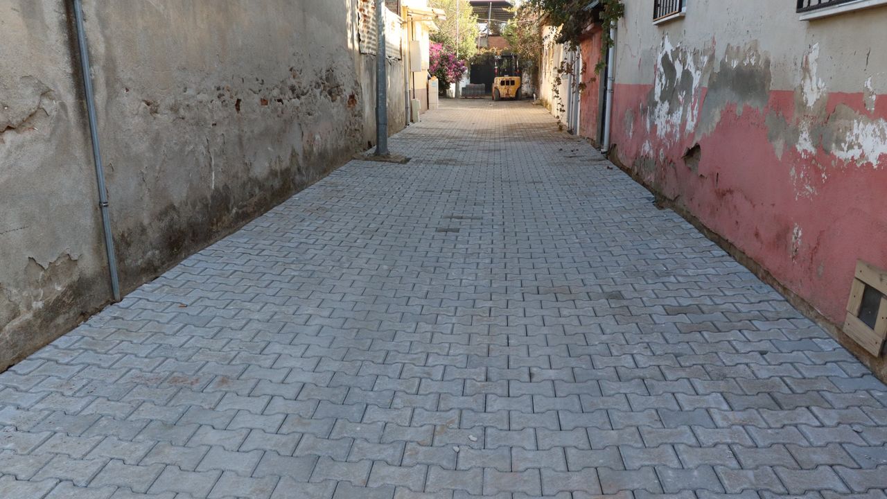 Çalışmalar kapsamında, kullanılamaz hale gelen eski yolun stabilize yapılarak parke taşı döşemeye uygun hale getirildi.