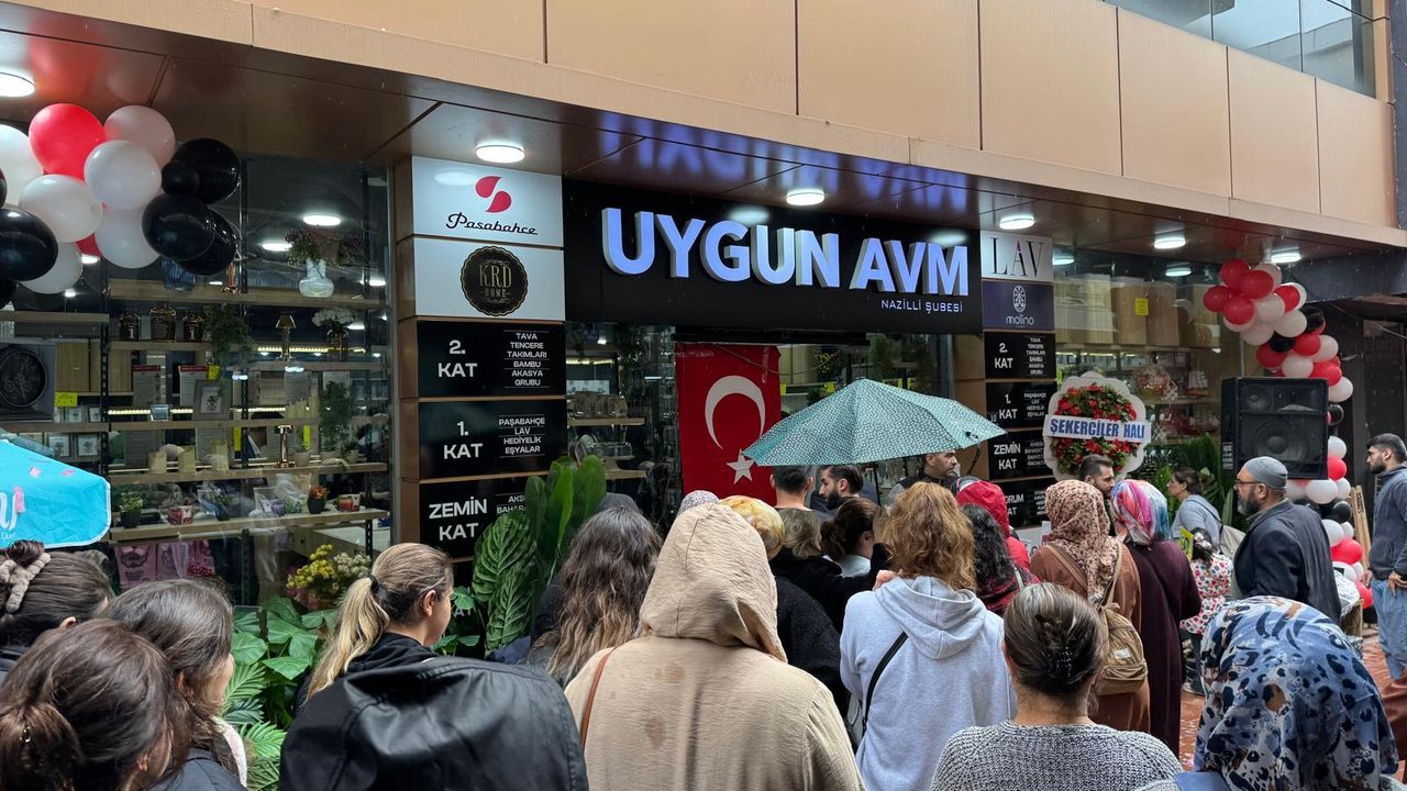Nazilli’de hizmete giren Züccaciye Alışveriş Merkezi, açılış gününde yoğun ilgi gördü. Saat 11.00 sıralarında yapılan açılış öncesi, yağmurlu havaya rağmen mağaza önünde uzun kuyruklar oluştu. Kapıların açılmasıyla birlikte vatandaşlar içeri girmek için adeta birbirleriyle yarıştı.