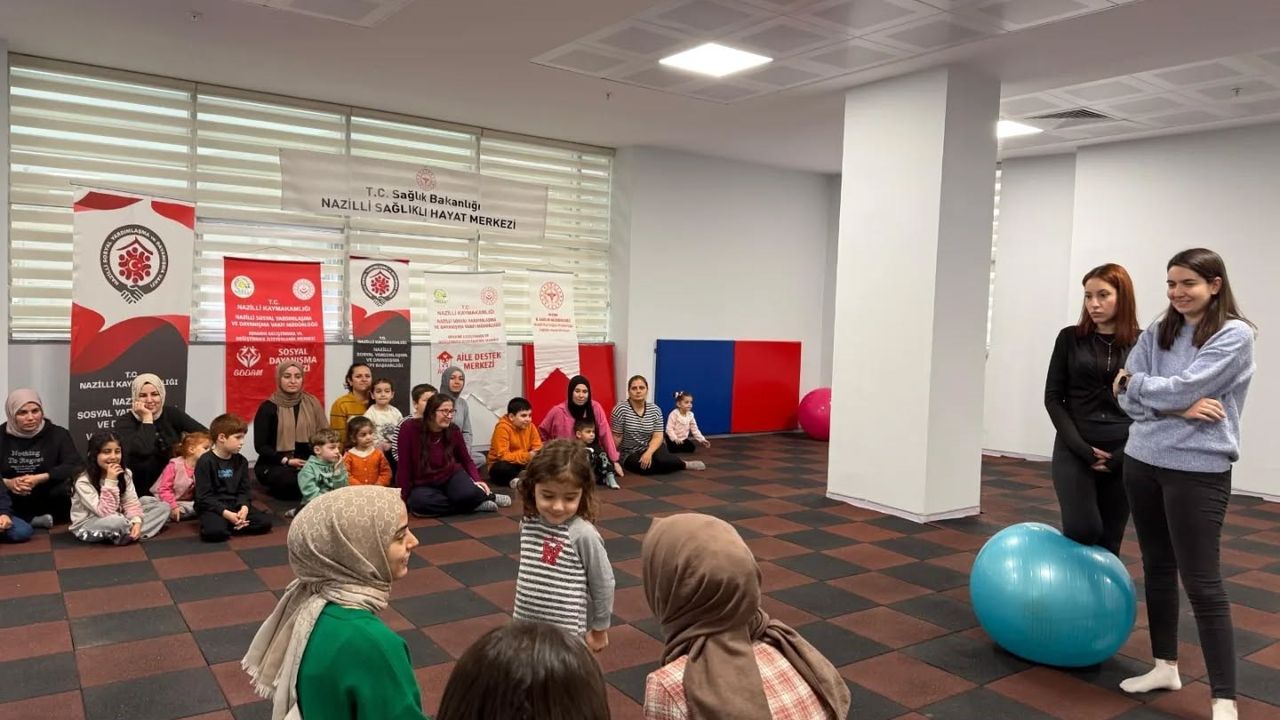 Nazilli İlçe Sağlık Müdürlüğü Cumhuriyet Sağlıklı Hayat Merkezi'nde Anne - Çocuk Sağlığı etkinliği düzenlendi. Nazilli Sosyal Yardımlaşma ve Dayanışma Vakfı bünyesinde faaliyet gösteren Sosyal Dayanışma Merkezi (SODAM) iş birliğiyle Sağlıklı Hayat Merkezi'ni ziyaret eden kursiyer annelere, merkezde sunulan hizmetler hakkında bilgilendirme yapıldı. Etkinliğe İlçe Sağlık Müdürü Dr. Şule Akbaş da katılırken, anneler fizyoterapist eşliğinde toplu olarak bilgilendirildi. Program kapsamında spor salonunda günlük yaşamda yapılması gereken egzersiz hareketleri uygulamalı olarak gösterildi. Etkinlikte ayrıca bayanlara kanser taramaları ile çocukluk döneminde görülen kanserler konusunda bilgi verildi. Diyetisyen tarafından talep eden vatandaşlara randevu oluşturuldu. Öte yandan anneler etkinliğe katılırken, oyun odasında psikolog ve çocuk gelişimciler tarafından çocukların gelişimleri gözlemlendi. Gözlem sırasında çocuklarla eğitici oyunlar oynanırken, annelerle yapılan görüşmelerle çocukların gelişimleri değerlendirilerek bilgilendirme sağlandı.