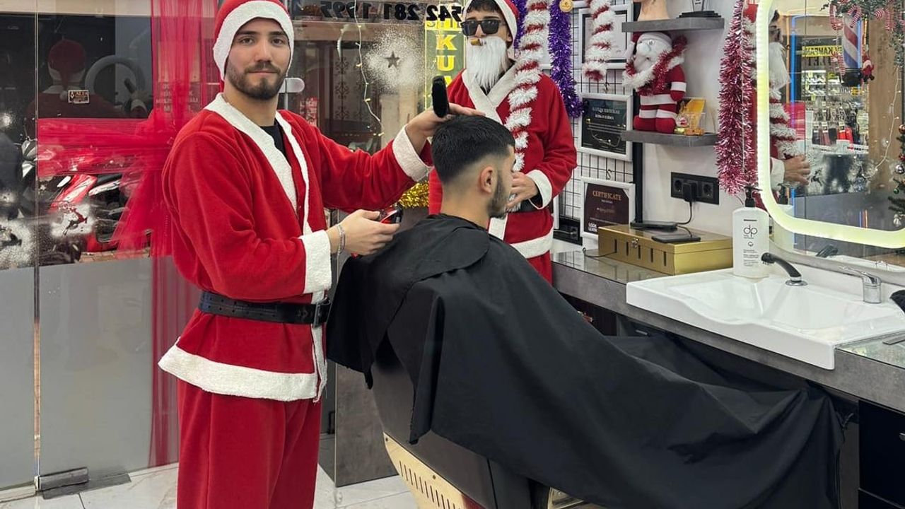 Yeni yıl öncesinde farklı bir uygulamaya imza atan Eyiden ve iş arkadaşları, kırmızı-beyaz Noel Baba kostümü ve şapkasıyla makasının başına geçti. Dükkana gelen müşteriler, Noel Baba kostümüyle tıraş edilmenin şaşkınlığını ve keyfini bir arada yaşarken, ortaya eğlenceli ve renkli görüntüler çıktı.
