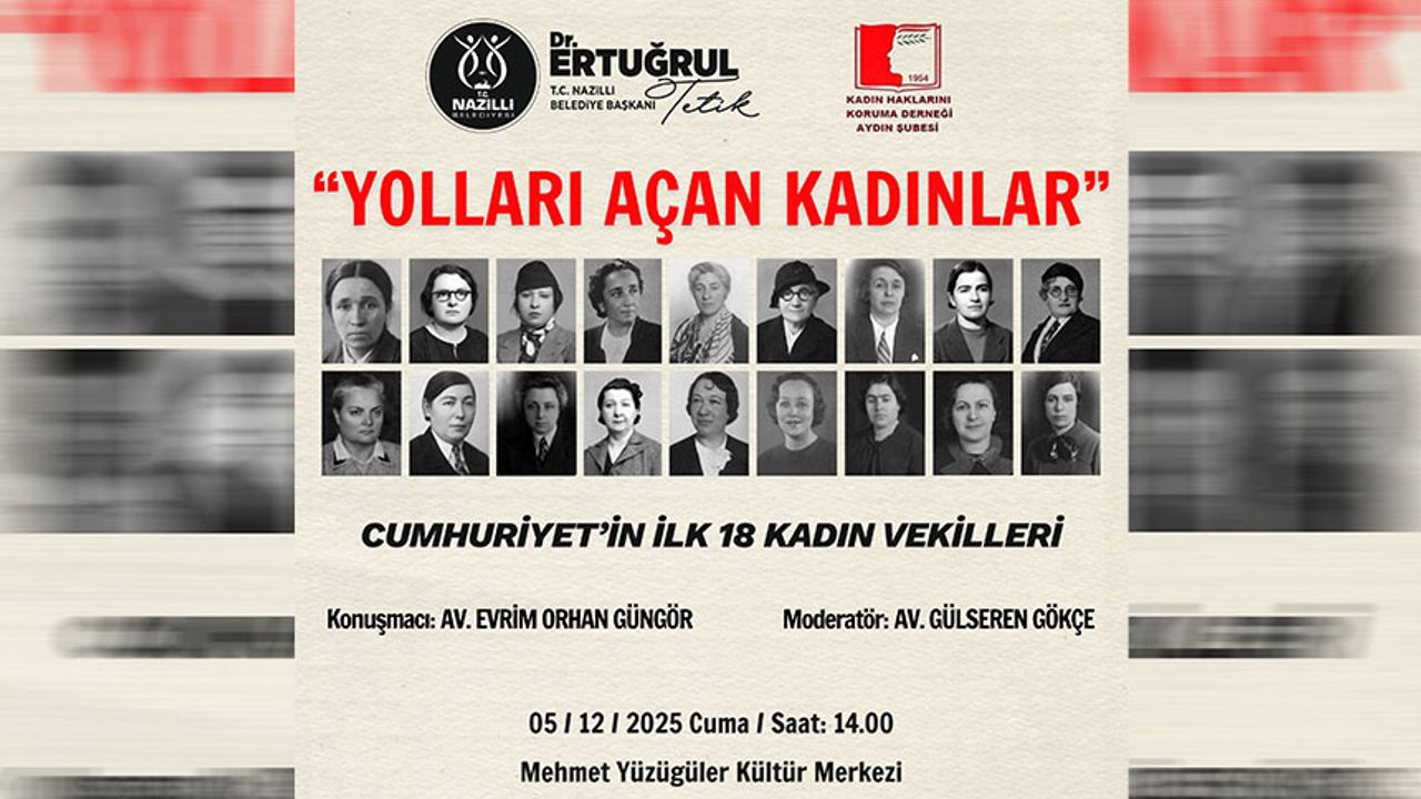 Nazilli Belediye Başkanı Dr. Ertuğrul Tetik ve Kadın Haklarını Koruma Derneği Aydın Şubesi’nin katkılarıyla düzenlenecek "Yolları Açan Kadınlar" Konferansı, kadınların demokrasi mücadelesini ve ilk 18 kadın milletvekilinin ilham veren hikayelerini vatandaşlarla buluşturacak.