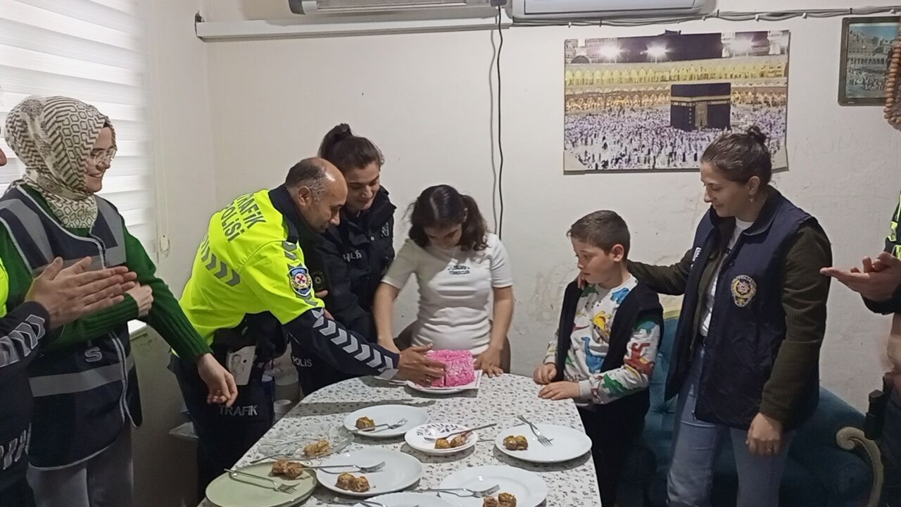 İlçe Trafik polis ekipleri, sirenlerini çalarak Atike Gür’ün evine geldiler. Ellerinde getirdikleri doğum günü pastasıyla genç kıza “İyi ki doğdun Atike” diyerek sürpriz yaptılar.
