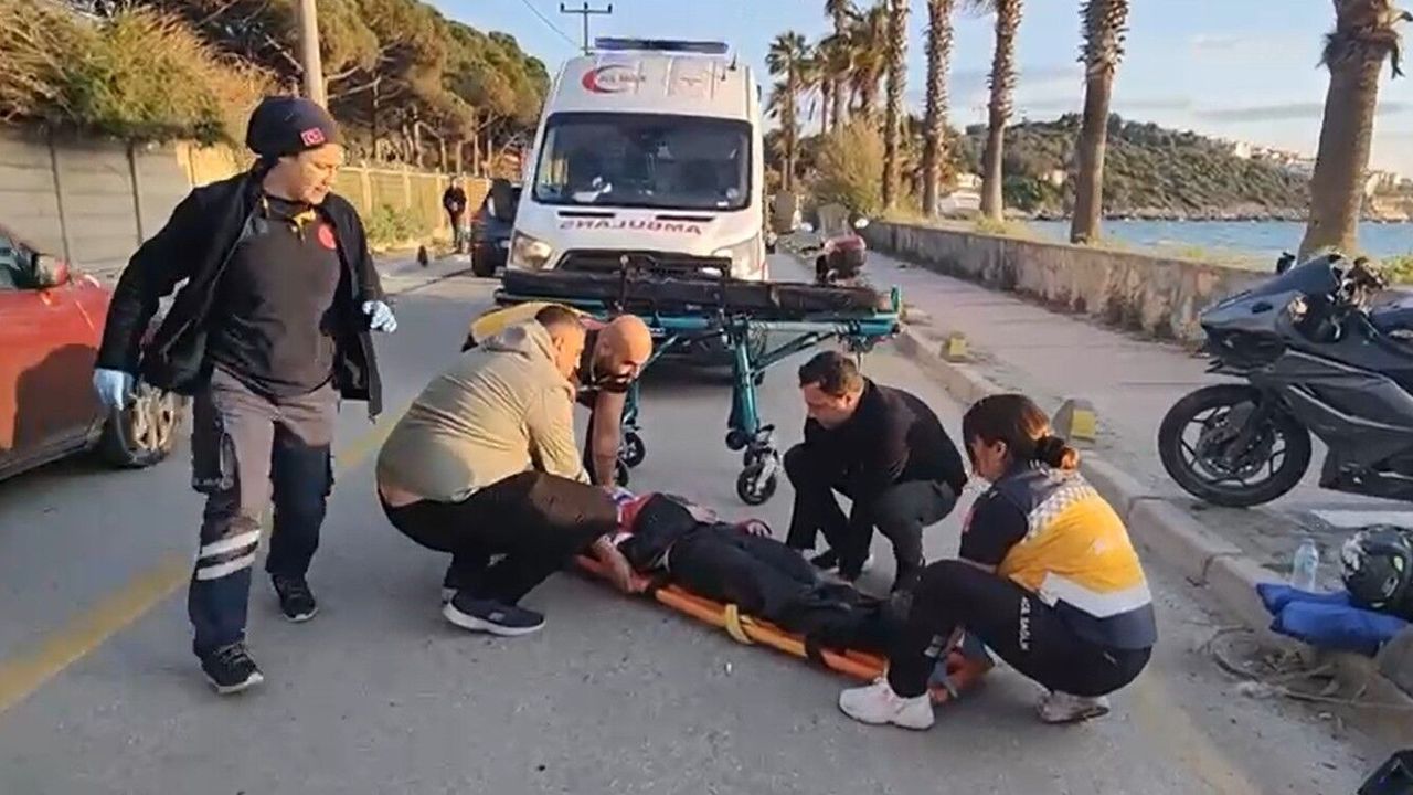 Kaza, Kuştur Caddesi üzerinde saat 18.00 sıralarında meydana geldi. Edinilen bilgilere göre, 60 ZE 880 plakalı otomobilin sürücüsü İ.B., seyir halindeyken yolun sağında bulunan kumsal alana dönmek istedi. Bu esnada aynı yönde ilerleyen 06 FNT 332 plakalı motosikletin sürücüsü G.Ö. ani manevra yaparak otomobile çarptı. Çarpmanın şiddetiyle savrulan motosiklet, kaldırıma çıktıktan sonra dolmuş durağına çarparak durabildi. Kazada yola savrulan motosiklet sürücüsü G.Ö.'nün sol bacağının kırılırken, arkasında yolcu olarak bulunan Y.Ö. ise vücudunun çeşitli yerlerinden yaralandı. Kazayı görenler durumu 112 Acil Çağrı Merkezi'ne bildirdi. İhbar üzerine bölgeye sağlık ve polis ekipleri sevk edildi. Kısa sürede olay yerine gelen sağlık ekipleri yaralılara ilk müdahalelerini yaparak ambulanslarla Kuşadası Devlet Hastanesi'ne kaldırdı. Hastanede tedavi altına alınan yaralıların sağlık durumlarının iyi olduğu öğrenildi.