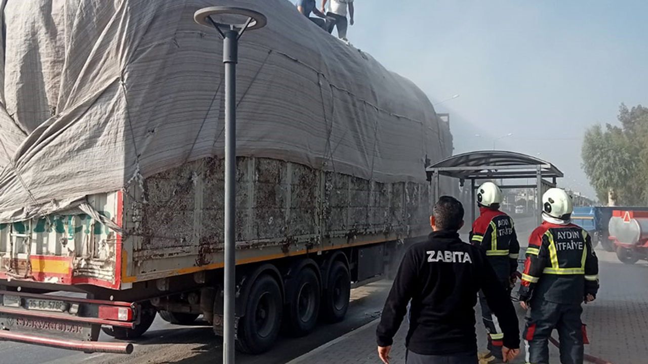 Olay, Germencik ilçesi Mesudiye Mahallesi'nde meydana geldi. Edinilen bilgiye göre pamuk yüklü tırın, dorse bölümünde henüz bilinmeyen bir nedenle yangın çıktı. Durumu fark eden araç sürücüsü durumu 112 Acil Çağrı Merkezi'ne bildirdi. İhbar üzerine bölgeye itfaiye ve polis ekipleri sevk edildi. Kısa sürede bölgeye gelen itfaiye ekipleri, yangını büyümeden söndürdü. Soğutma çalışmalarının ardından yangının çıkış nedeninin belirlenmesi için inceleme başlatıldı.
