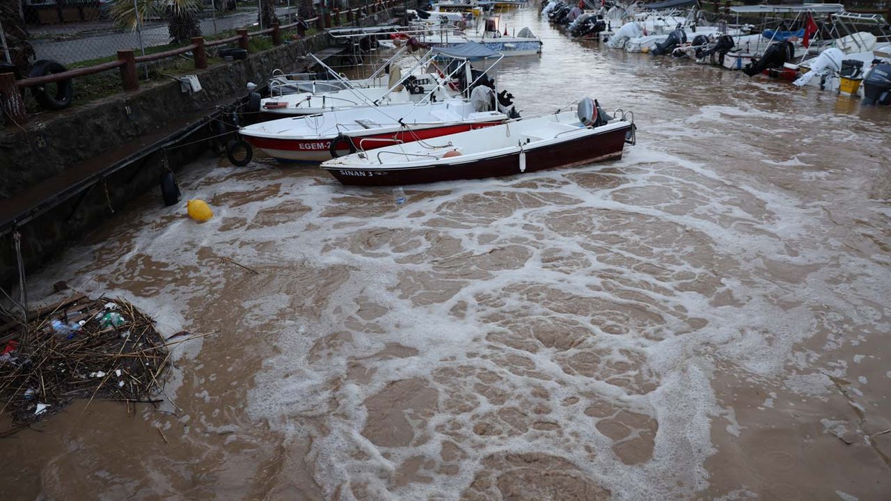 Kuşadası'nda etkili olan sağanak yağış, ilçe genelinde hayatı olumsuz etkiledi. Özellikle Davutlar ve Güzelçamlı mahallelerinde taşkınlar meydana gelirken, sel baskını yaşandı. Birçok noktada sokak ve caddeler trafiğe kapanırken, balıkçı barınağında bulunan tekneler de selden nasibini aldı. Denize doğru akan sel suları, Davutlar Balıkçı Barınağı'nda bağlı teknelere doldu. Yoğun su alan yaklaşık 10 tekne batarken, çok sayıda teknede de zarar meydana geldi. Yaşanan olayın ardından bölgeye gelen tekne sahipleri, teknelerine dolan suları kendi imkanlarıyla tahliye etmeye çalışırken, batan teknelerin ise kaldırılması için çalışma başlatıldı. Sel sularının bir anda barınağın duvarını aşarak bağlı olan teknelerin içine dolduğunu ifade eden tekne sahipleri, çok sayıdaki teknenin de sürüklenerek çarpışması sonucu zarar gördüğünü söyledi. Bölgede sel baskınına ilişkin çıkan haberleri gören bazı tekne sahipleri de barınağa gelerek hem teknelerini kontrol etti hem de batan teknelerin kurtarılmasına destek verdi.