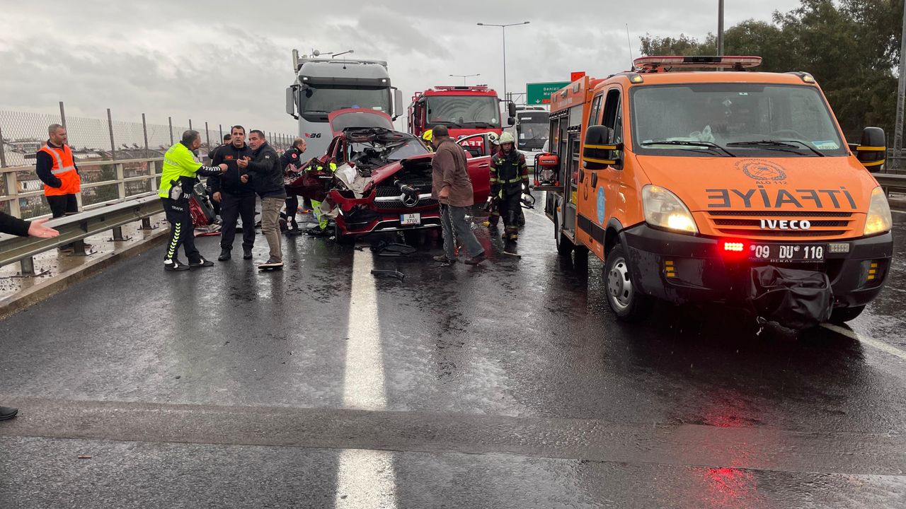 Kaza, Aydın-İzmir Karayolu Ali İhsan Paşa Köprüsü üzerinde meydana geldi. Edinilen bilgiye göre, yağış nedeniyle kayganlaşan yolda D.Ö. idaresindeki tırın 15 KD 504 plakalı dorsesine M.A. idaresindeki AA 37 OV plakalı Mercedes marka otomobil arkadan çarptı. Çarpmanın etkisiyle dorsenin altına giren otomobil hurdaya dönerken kazada araç içerisindeki 2 kişi yaralandı. İhbar üzerine bölgeye polis, itfaiye ve sağlık ekipleri sevk edildi. Kısa sürede olay yerine gelen itfaiye ekipleri, araçta sıkışan kadın yolcuyu kurtararak sağlık ekiplerine teslim etti. Yaralılar ilk müdahalelerinin ardından ADÜ Araştırma ve Uygulama Hastanesi'ne kaldırıldı.
