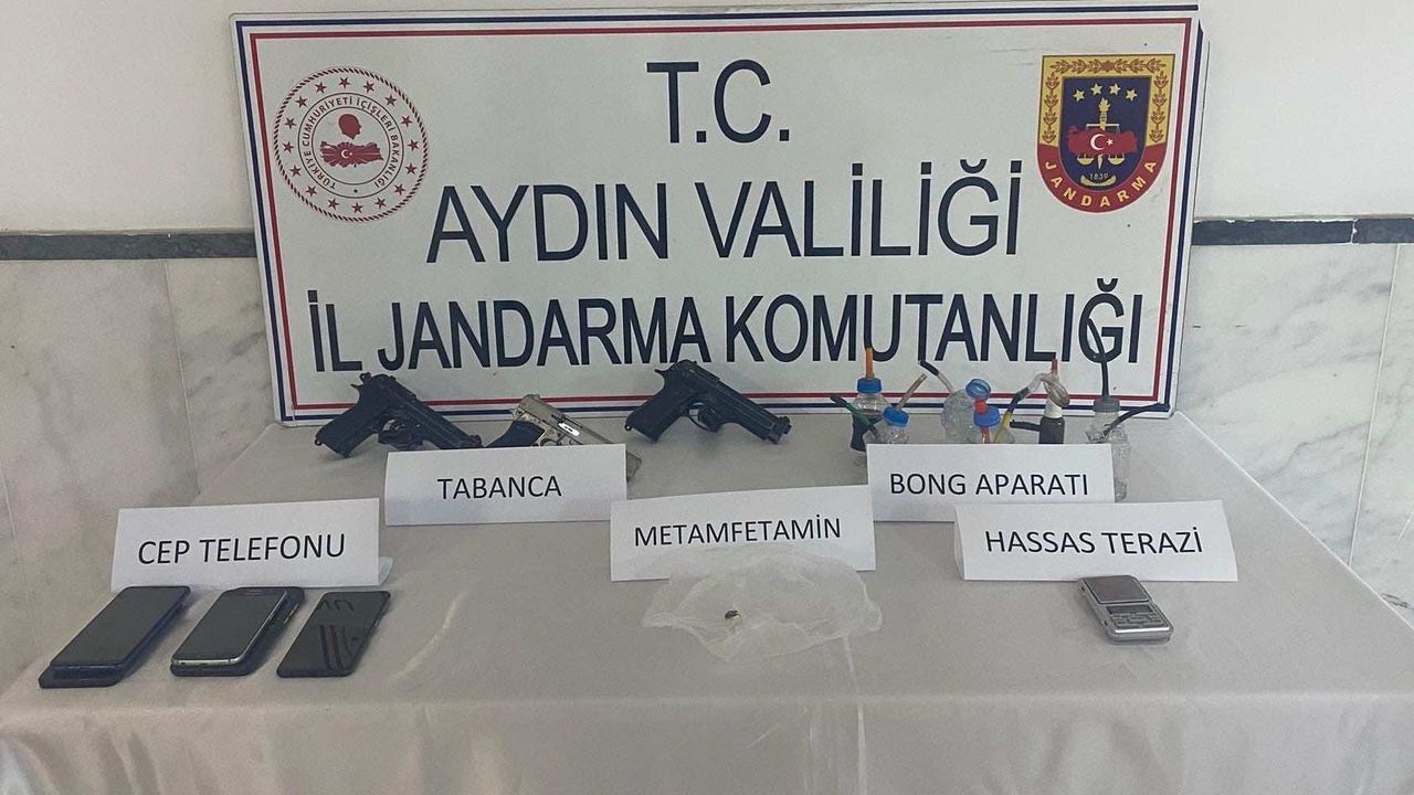 Kuyucak İlçe Jandarma Komutanlığı tarafından uyuşturucu madde imal ve ticaretine yönelik çalışma gerçekleştirildi. Başaran Mahallesi’nde "Dolandırıcılık" suçundan hakkında infaza yönelik yakalama kararı bulunan B.D. (33) isimli şahsın, S.Ö ve N.Ö. isimli şahısların evinde saklandığı ve bu evde birlikte uyuşturucu madde ticareti yaptıklarının tespit edilmesi üzerine uyuşturucu madde arama köpeği ile birlikte ikamette arama yapıldı. Yapılan aramada, 13 gram metamfetamin, 1 adet hassas terazi, 3 adet tabanca, 6 adet uyuşturucu kullanma aparatı, 5 adet cep telefonu ele geçirildi. Adli makamlara sevk edilen şahıslardan B.D. tutuklanırken, S.Ö. ve N.Ö. isimli şahıslar ise adli kontrol şartıyla serbest bırakıldı.