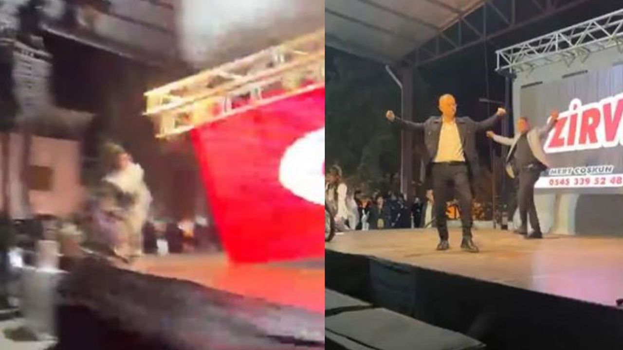 Kuyucak ilçesinde düzenlenen program, halktan yoğun ilgi gördü. Semt pazarında gerçekleştirilen program çerçevesinde sahneye davet edilen Kuyucak Belediye Başkanı zeybek oynadı. Başkan Doğanca’nın sahnedeki zeybek performansı izleyenlerden tam not aldı. Başkan Doğanca sahneden indiği sırada aniden bastıran fırtına, sahne kurulumunu vurdu. Doğanca’nın saniyeler önce üzerinde bulunduğu alanın arkasındaki dev LED ekran büyük bir gürültüyle sahneye devrildi. Başkanın sahneyi terk etmesiyle muhtemel bir facianın eşiğinden dönülürken, yürekler ağza geldi. Ucuz atlatılan kaza amatör kameraya böyle yansıdı.